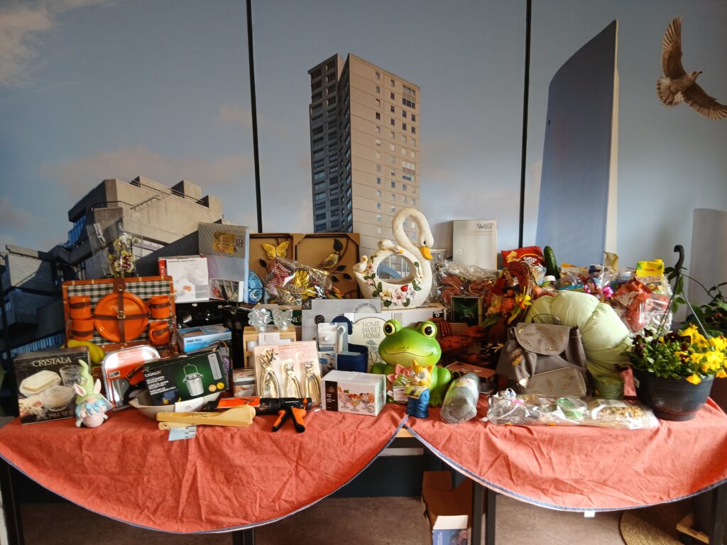 Loes heeft weer voor een volle tafel prijzen gezorgd voor de loterij, zodat bijna iedereen wel met iets naar huis ging.