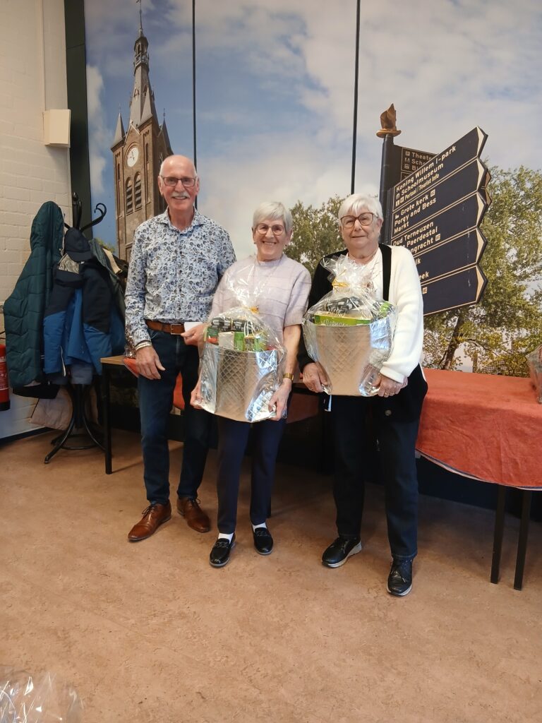 Op 8 november speelden we een leuk toernooi in De Triangel met vijftien koppels. Het bestuur had voor broodjes, soep en een rijk gevulde prijzenkast gezorgd.